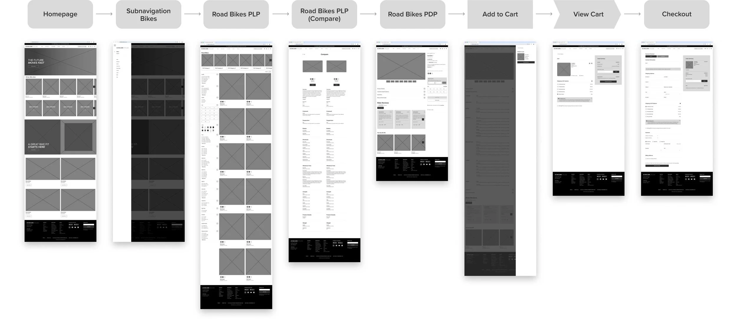The following websites were selected and analyzed to discover more about the current UI design standards of e-commerce websites: Competitive Cyclist, Specialized and Backcountry. These three sites also served as key inspiration for my redesign concepts and played a pivotal role in determining which design solutions were pursued.