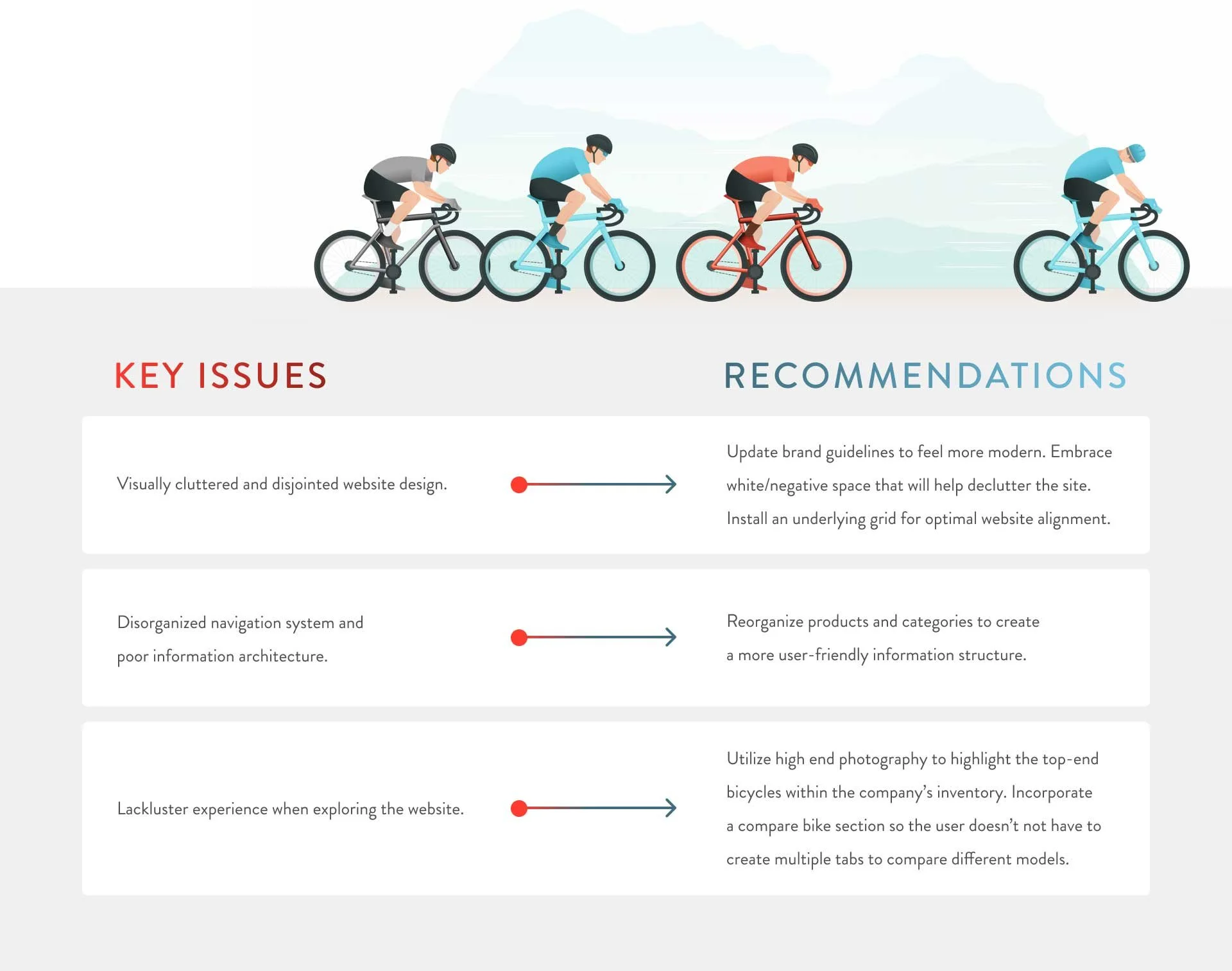 After conducting usability tests with the existing Echelon Cycles website, users expressed multiple frustrations when trying to complete the assigned task.